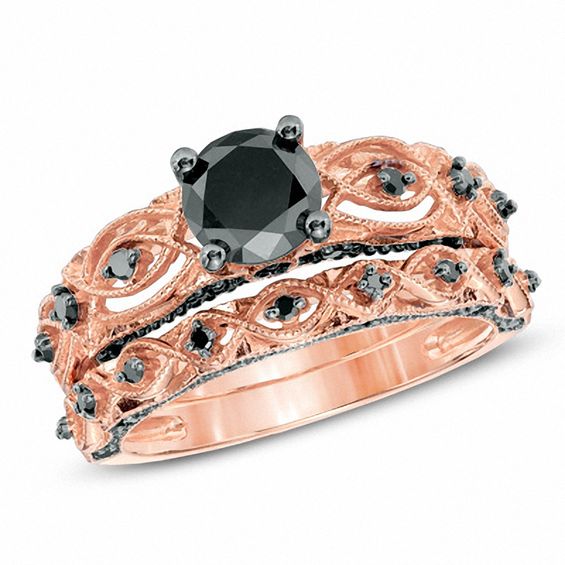 1 3 8 Ct T W Enhanced Black Diamond Vintage Style Bridal Set In 10k Rose Gold Zales Outlet