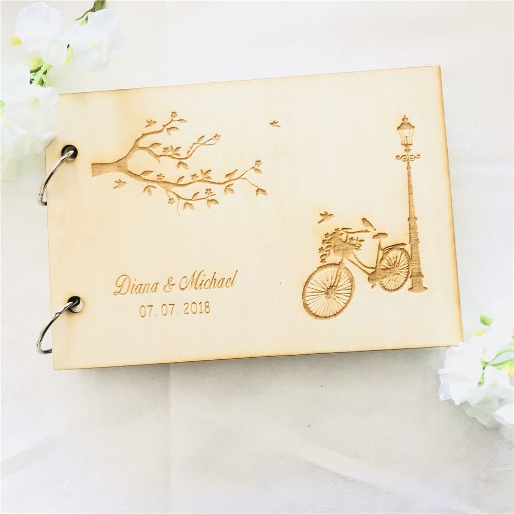 Custom Gifts Diy Wood Wedding Photo Album Rustic Wedding Guest Book Wooden Guestbook Party Check In Signature Books Custom Words