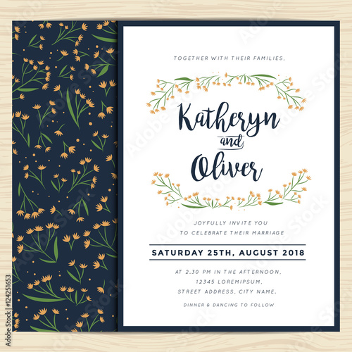 Wedding Invitation Card With Wreath Flower Template And Floral