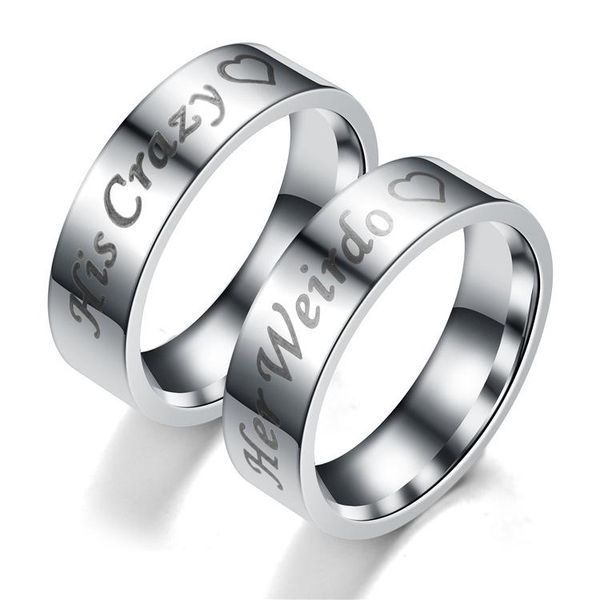 Couple Letter Ring Wedding Lovers Anniversary Engagement Promise Ring His Crazy Her Weirdo Letter Print Romantic Unique Engagement Rings Black Diamond