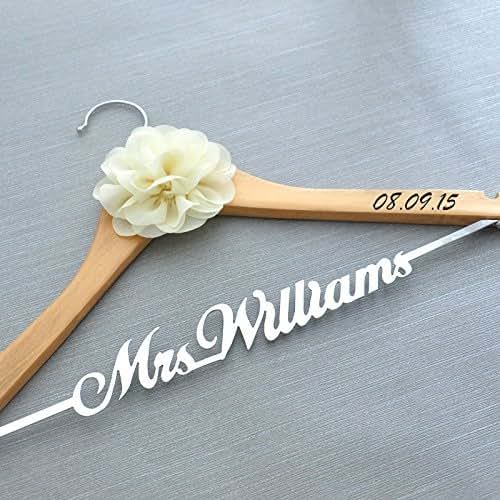 Custom Wedding Hanger With Flower Personalized Wedding Dress Hanger Bridal Dress Hanger Custom Bridal Hanger Wedding Name Hanger