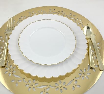 Amazon Com Round White And Gold Rim Elegant Wedding And Party