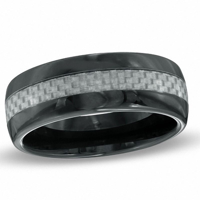 Men S 8 0mm White Carbon Fiber Black Ceramic Comfort Fit Wedding Band Zales