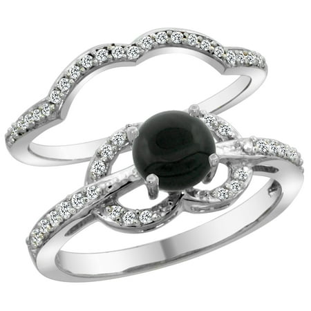 14k White Gold Natural Black Onyx 2 Piece Engagement Ring Set Round 6mm Size 9