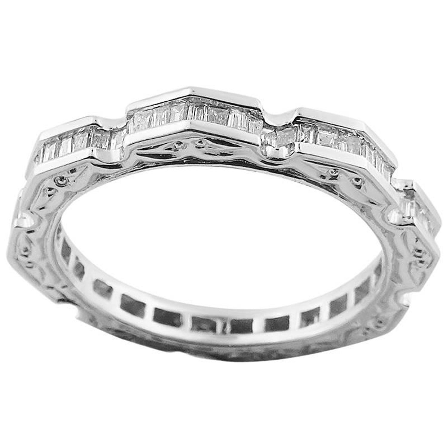 White Gold Wedding Band With Emerald Cut 0 77 Ct Diamonds Ring