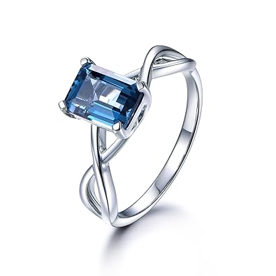 London Blue Topaz Engagement Ring 14k White Gold Split Cross Plain