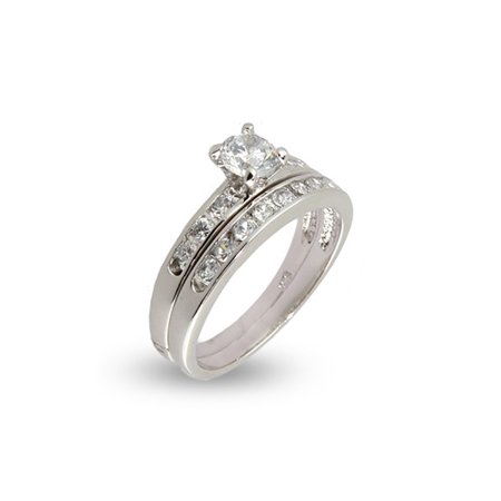 Simple Channel Set Cz Wedding Ring Set
