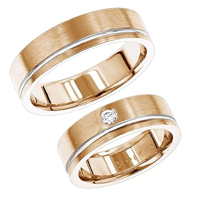 Amazon Com 14k Gold Two Tone His And Hers Diamond Wedding Bands Set
