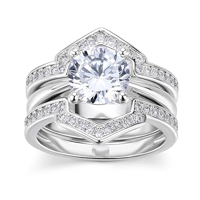Lateefah Cubic Zirconia Wedding Ring Sets 1 8 Carat Big Round Simulated Diamond Bridal Rings Set For Women Size 6 9