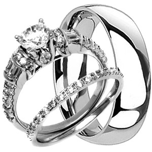 Details About Titanium Mens Band And 2 Pc Womens Engagement Wedding Cz Ring Set His Hers