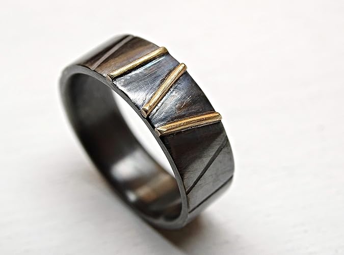 Amazon Com Black Silver Gold Wedding Ring Mens Wedding Band Two