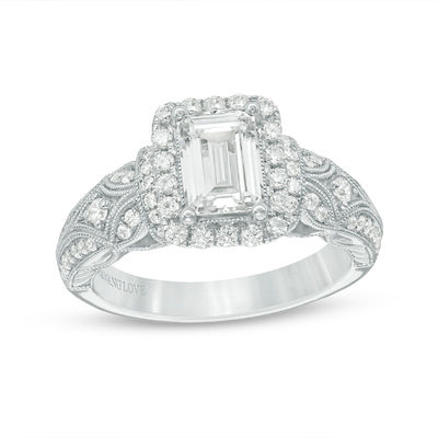 Vera Wang Love Collection 1 1 2 Ct T W Emerald Cut Diamond Frame Vintage Style Engagement Ring In 14k White Gold Zales