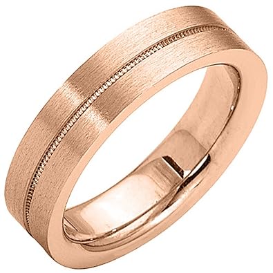 14k Rose Gold Mens Wedding Band 5mm Satin Milgrain Comfort Fit