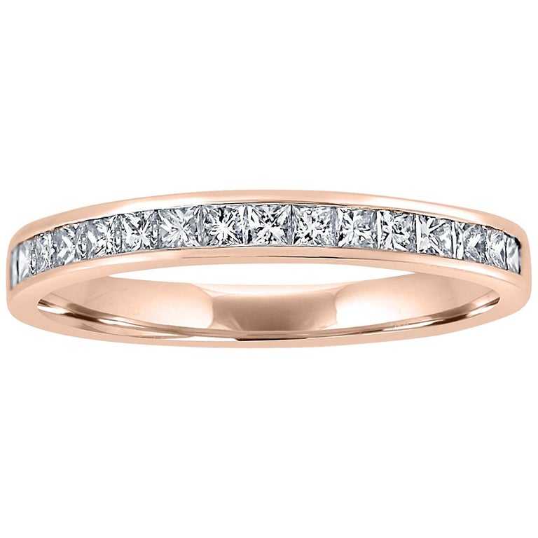 18 Karat Rose Gold Eternity Ring Band Half Set With Princess Cut Diamonds