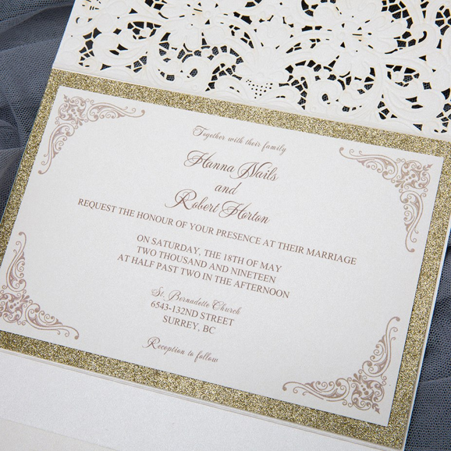 High End Glittery Laser Cut Wedding Invitations With Foil Vellum Belly Band Swws124 Stylishwedd