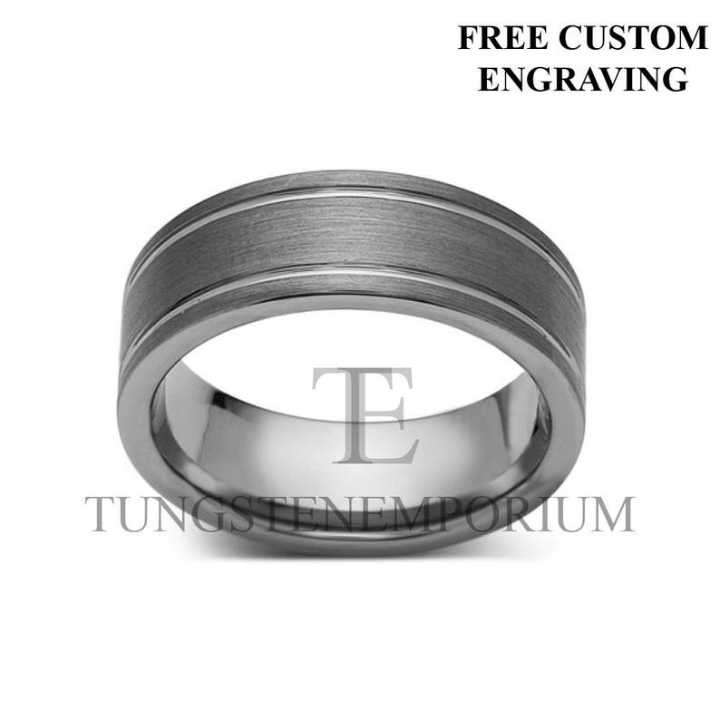 Tungsten Carbide Ring Straight Edge White Gold With Brushed Gray Dual Inlay Style Comfort Fit Wedding Band Mens Womens Jewelry 8mm Or 6mm