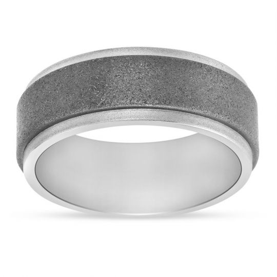 18k White Gold Tungsten 8mm Matte Finish Step Edge Wedding Band Size 10
