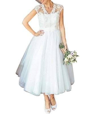 Mauwey Women S 1950s Vintage Tea Length Cap Sleeve Lace Wedding