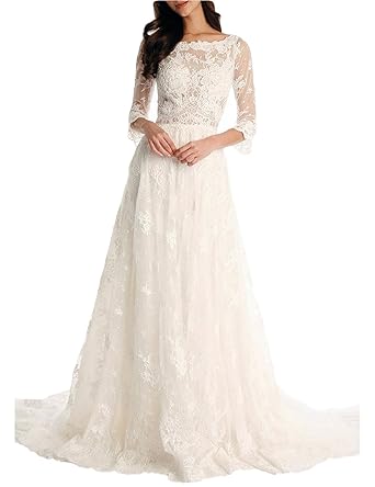 Lmbridal Women S Square Neck Long Bohemain Lace Wedding Dress With