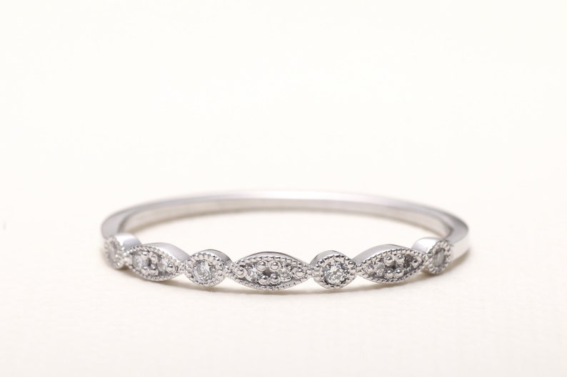 Art Deco Wedding Band Anniversary Stackable Diamond Ring 0 06ct 14k Yellow Gold Ebay