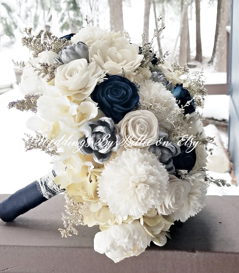 Navy Silver Sola Bouquet Wedding Flowers Sola Bouquet Sola Flowers Wedding Decor Rustic Shabby Chic Bridal Accessories Keepsake Bouquet