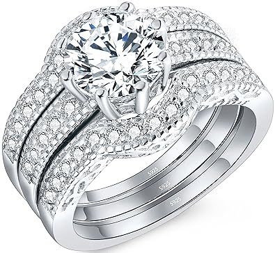 Mabella Jewelry 2 50 Cttw Halo Round White Cubic Zirconia 925 Solid Sterling Silver Trio Classic Engagement Wedding Band Ring Sets Gifts For Women