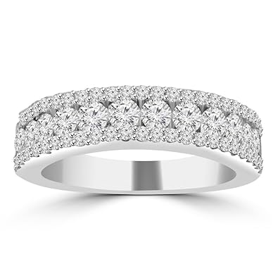 Diamond Wedding Ring 3 4 Ct Double Row Half Eternity Womens 14k White Gold Band