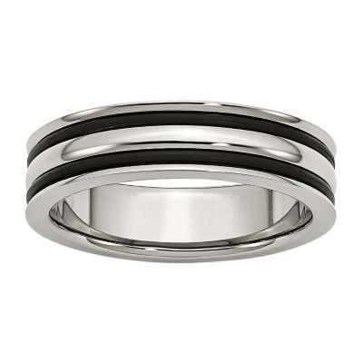 Personalized Mens 6mm Stainless Steel Black Rubber Wedding Band
