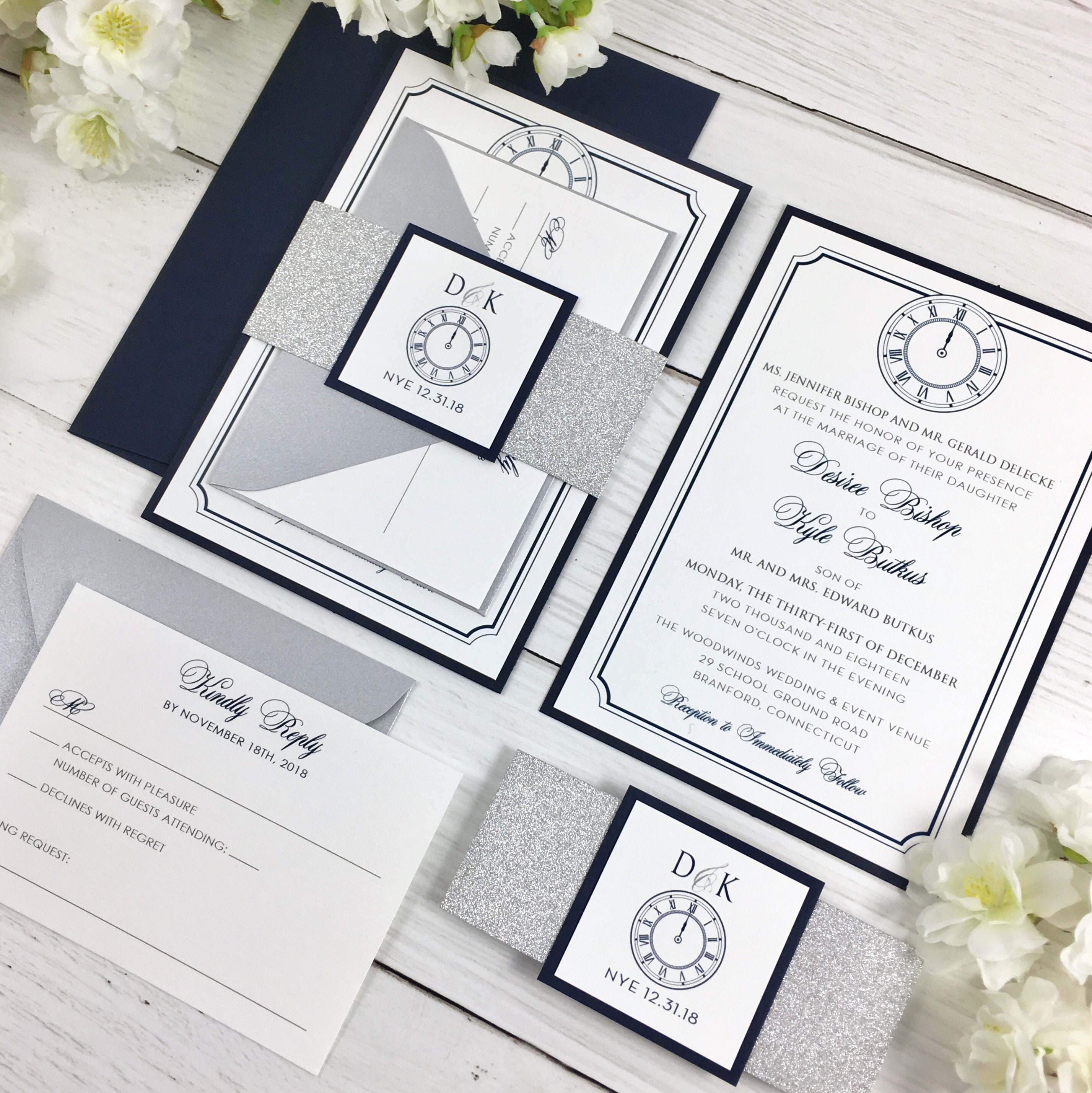New Years Eve Wedding Invitations Nye Wedding Navy And Silver Wedding Invitations Silver Glitter Navy New Years Eve Winter Wedding