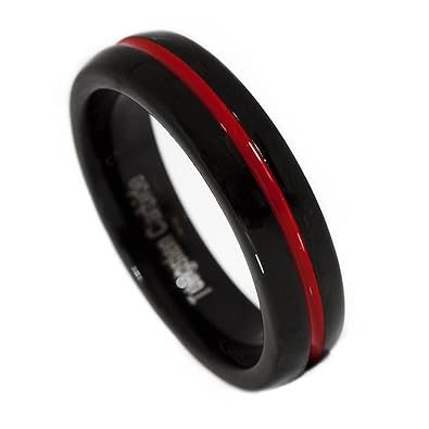 Amazon Com Panvisionary 5mm Thin Red Line Black Ip Tungsten Carbide