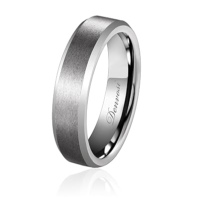 Denvosi 6mm Men Wedding Band Tungsten Ring Matte Brushed Silver Surface High Polished Inner Face Beveled Edges Engagement Anniversary Ring Comfort Fit