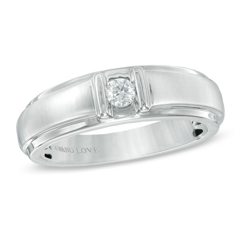Vera Wang Love Collection Men S 1 6 Ct Diamond Solitaire Wedding Band In 14k White Gold Zales