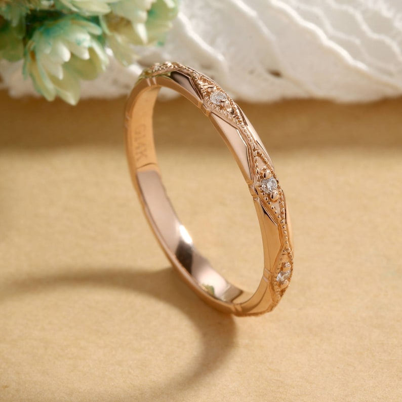 Art Deco Wedding Band Women Rose Gold Vintage Milgrain Antique Dainty Diamond Eternity Band Stacking Bridal Set Jewelry Anniversary Promise