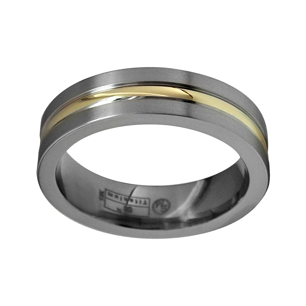 Titanium Wedding Ring For Men Gold Tone Step Down Edges 8mm