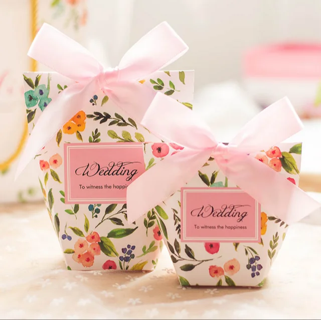 Us 14 28 13 Off 30 Pcs Pink Floral Printed Gift Bags Wedding Favors Candy Boxes Bomboniera Sachet Party Favors Gift Box Paper Candy Bags In Gift