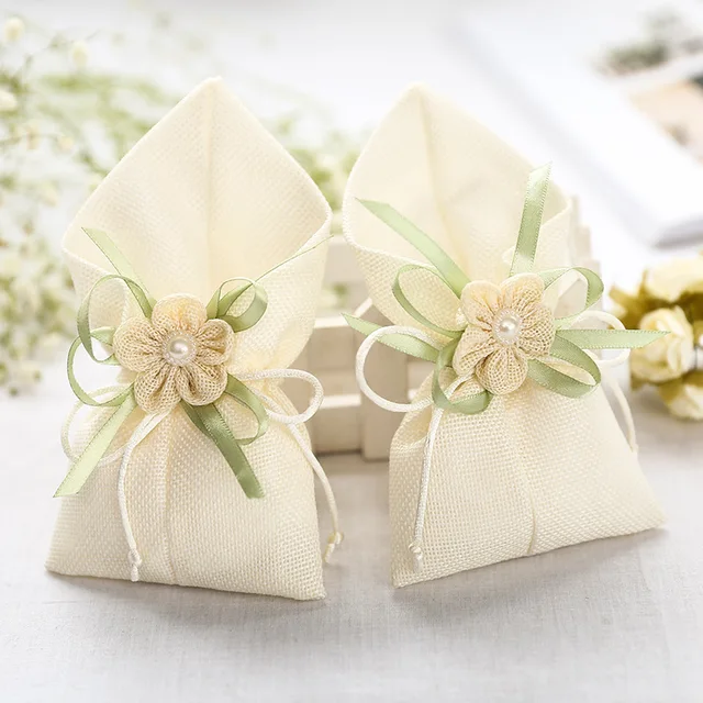 Aliexpress Com Buy 30x Diy Beautiful Linen Ivory Wedding Favor Decorations Candy Bag With Flower Decor Happy Event Supplies From Reliable Bag F