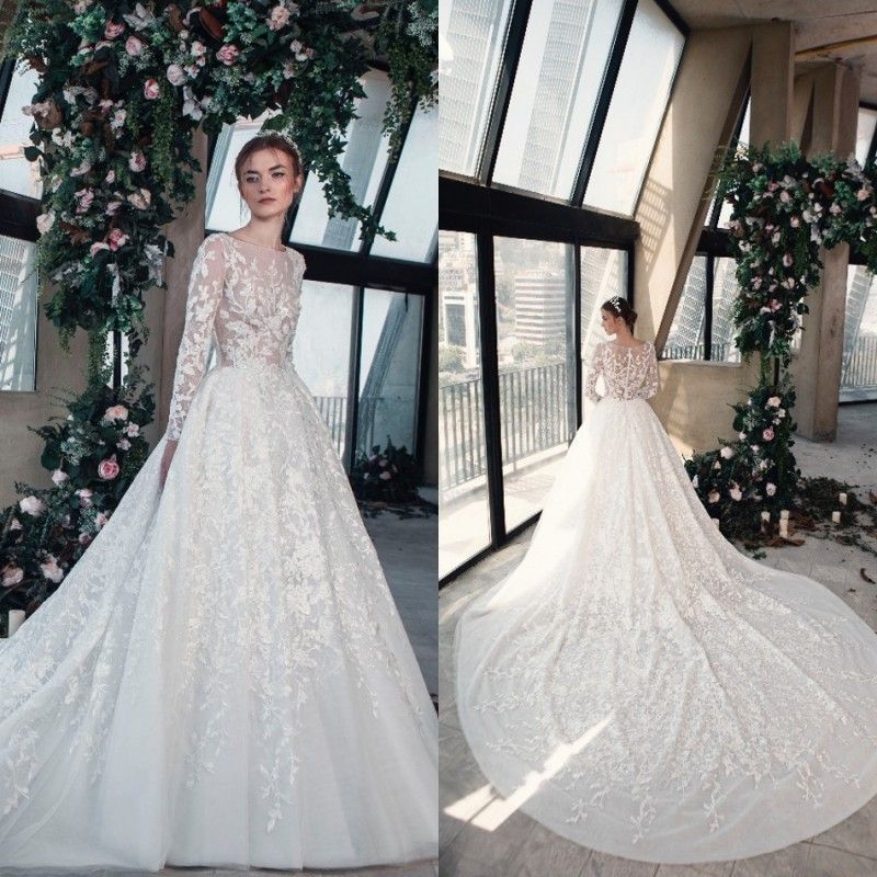Tony Ward 2019 Wedding Dresses Long Sleeve Jewel Neck Lace Appliqued Bridal Gowns A Line Bohemian Beach Garden Wedding Dress