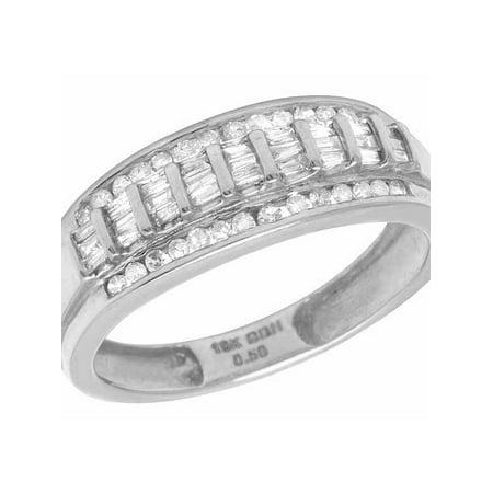Men S 10k White Gold Real Baguette Diamond Wedding Band Ring 1 2 Ct 8mm