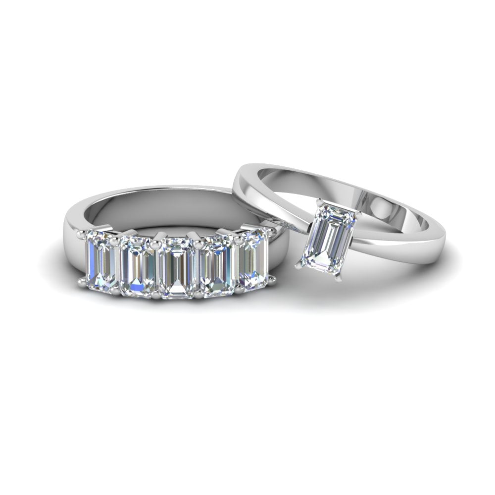 Solitaire Engagement Ring With 5 Stone Matching Wedding Band 1 40 Carat Emerald Cut Diamond