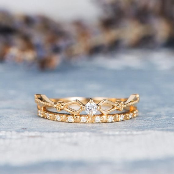 Antique Diamond Band Unique Crown Retro Half Eternity Wedding Band