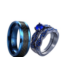 Details About His 8mm And Her 6mm Tungsten Engagement Black Blue Couples Wedding Band Ring Set