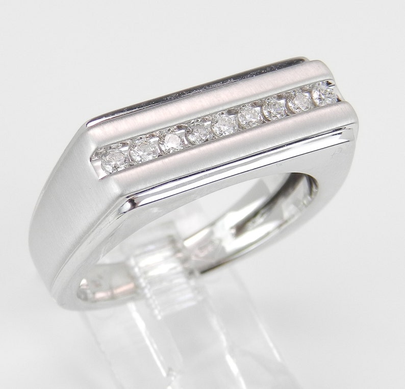 Mens Diamond Ring Mens White Gold Wedding Band Mens Anniversary Ring Channel Set Mens Ring Size 10 25