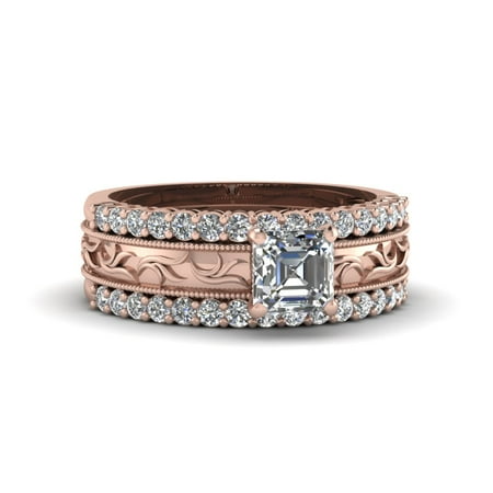 1 Carat Asscher Cut Solitaire Diamond Nature Inspired Engagement Ring With 2 Round Diamond Wedding Bands In 14k Rose Gold Gia Fascinating Diamonds
