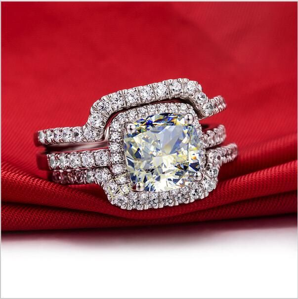 Hot Luxury New Bridal Set Wedding Rings Sets 3 Karat G H Cushion Princess Cut Best Quality Nscd Synthetic Diamond 3pc Ring Sets