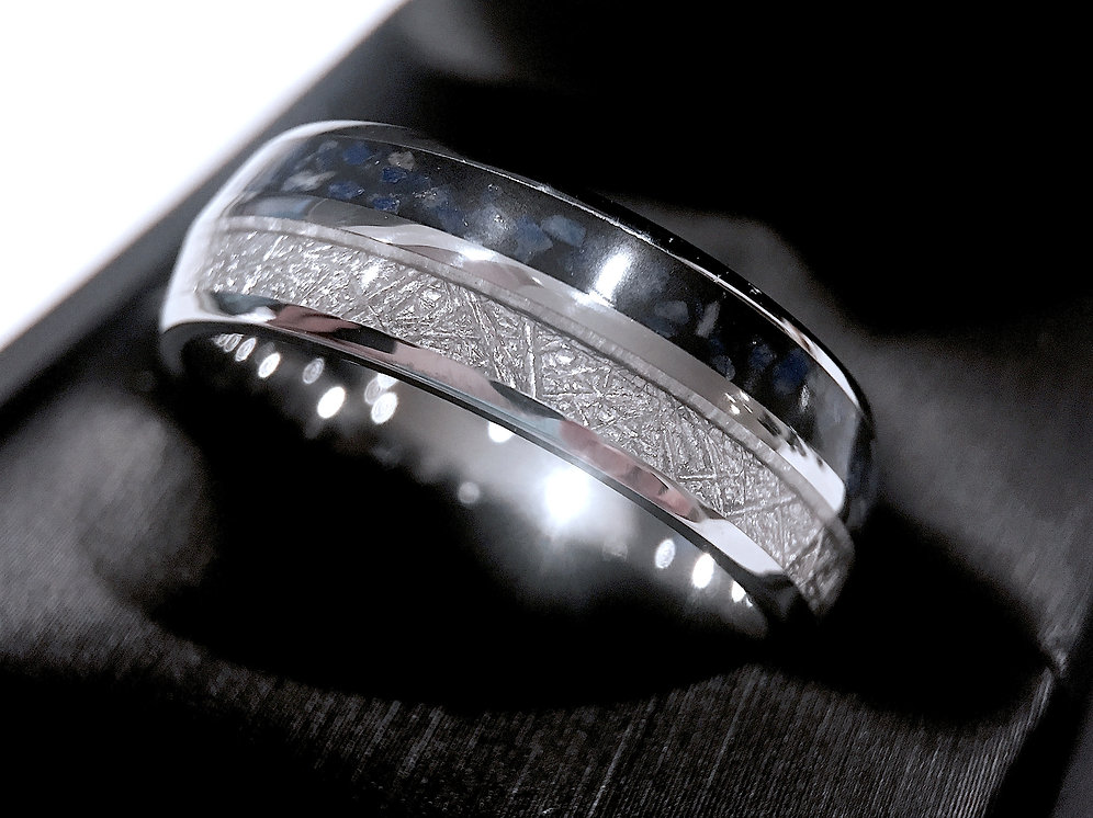 Matching Rings Set Meteorite Ring Mens Tungsten Wedding Bands Meteorite Inlay Ring Engagement Rings Tungsten Rings By Rings Paradise
